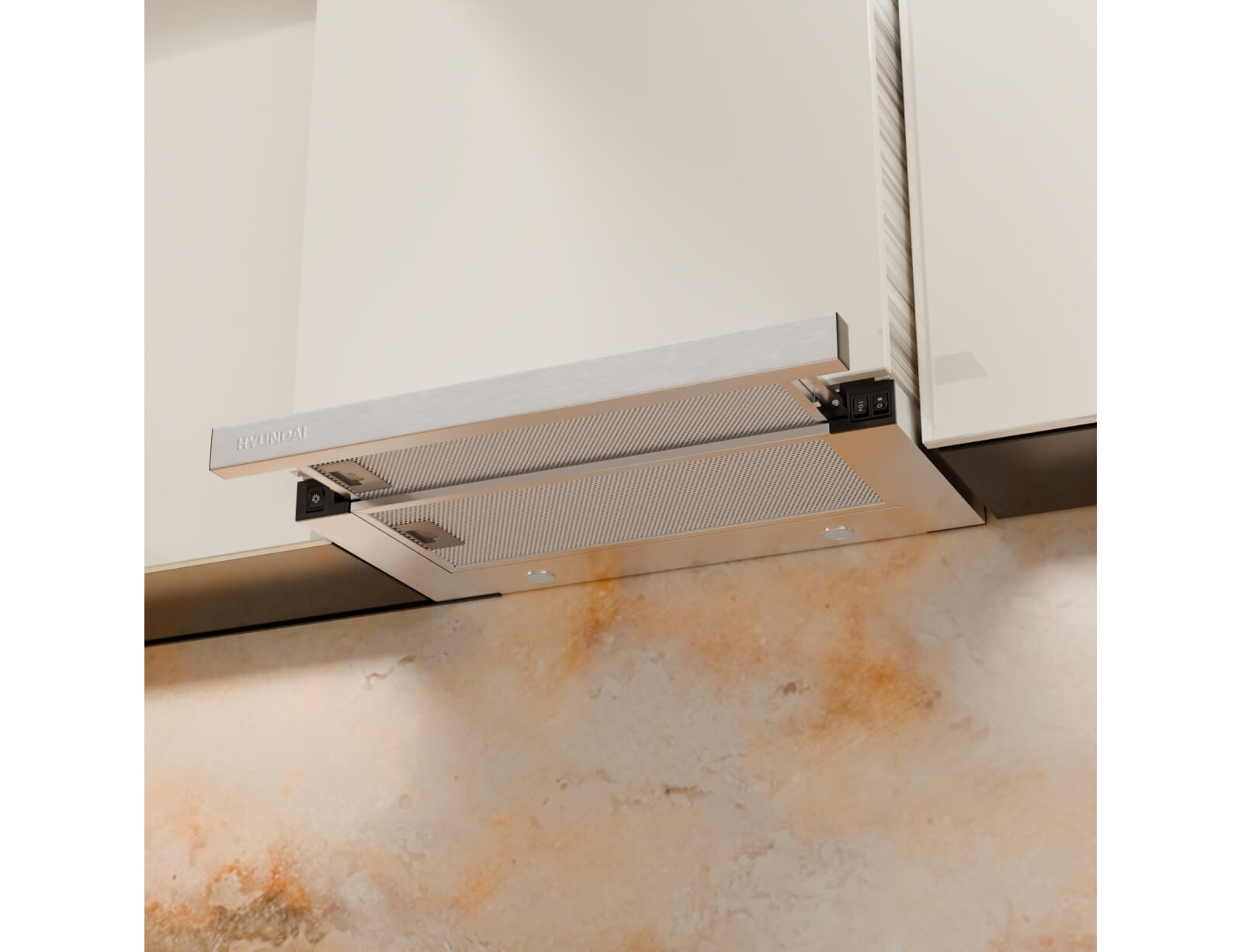 Ο συρόμενος απορροφητήρας Hyundai HHD24-TL9061X/T διαθέτει κομψό σχεδιασμό σε Inox χρώμα, που θα αναδείξει την κουζίνα σας, ενώ παράλληλα θα σας αφήσει απόλυτα ικανοποιημένους από τις επιδόσεις του, με την υψηλή απορροφητικότητα 650 m³/h.