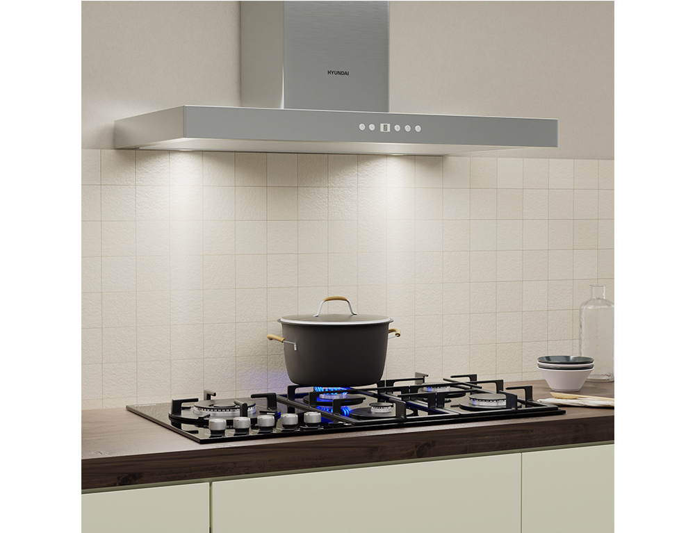 Απορροφητήρας Hyundai HHD21-T3790EL/X με πλάτος 90cm και απορροφητική ισχύ 520 m³/h - Inox