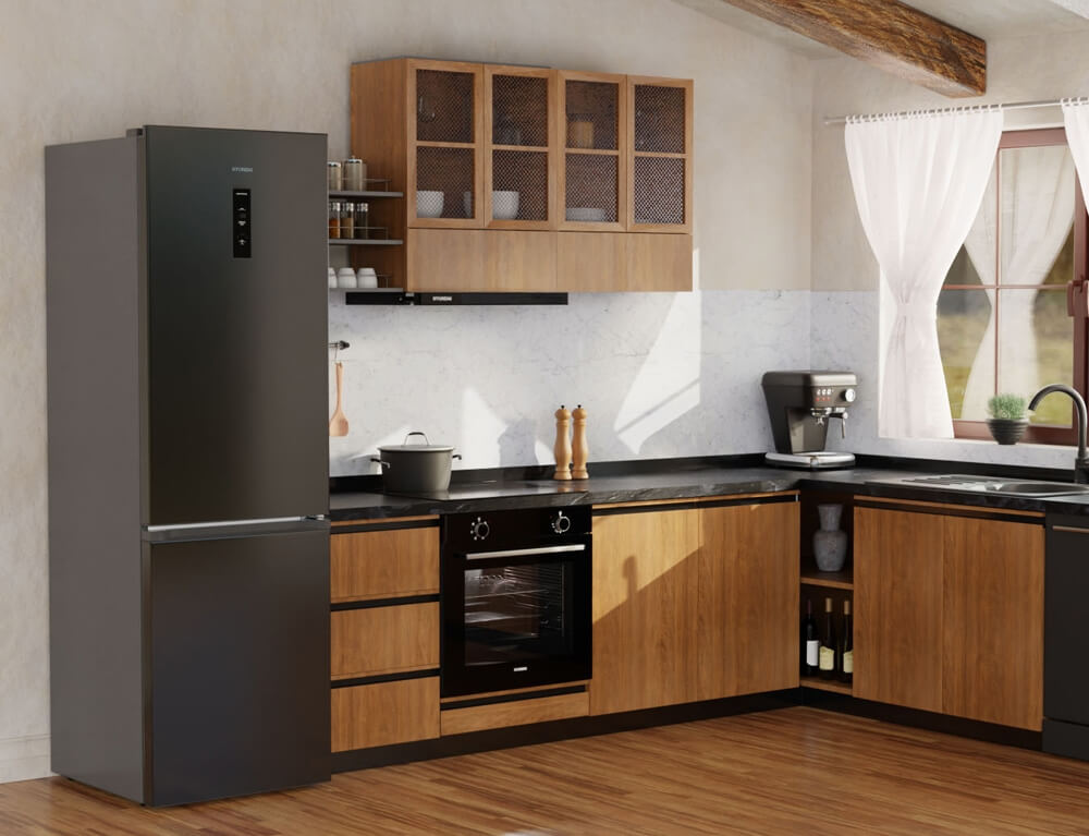 Ψυγειοκαταψύκτης Hyundai HCS23-4893BDG/NF με απλό σχεδιασμό σε dark inox χρώμα, μεγάλη χωρητικότητα τροφίμων που φθάνει τα 344 λίτρα και υψηλή απόδοση E για εξοικονόμηση ενέργειας. Επιπλέον διαθέτει τεχνολογία Total No Frost για μεγαλύτερη φρεσκάδα, ρυθμιζόμενα ράφια tempered glass.