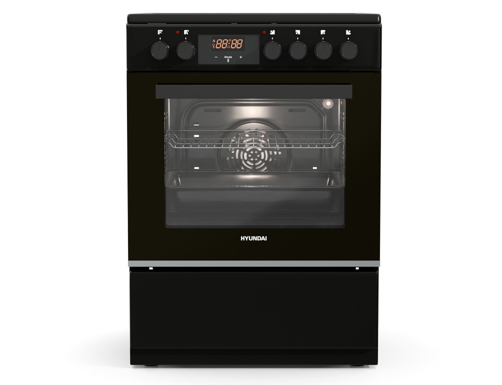 Κουζίνα Hyundai HCVC24V-7260V/BL με μεγάλη χωρητικότητα φούρνου 69 λίτρα, ενεργειακή κλάση Α, 4 κεραμικές εστίες μαγειρέματος και 5 λειτουργίες ψησίματος.