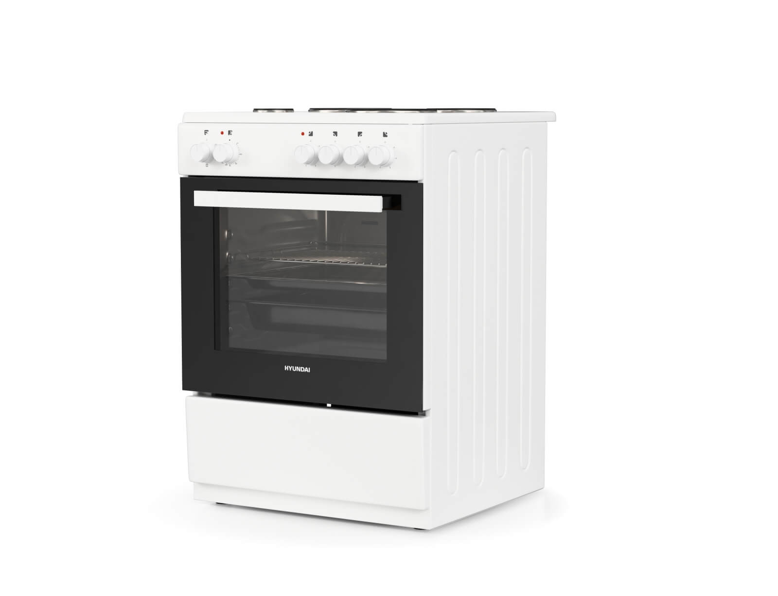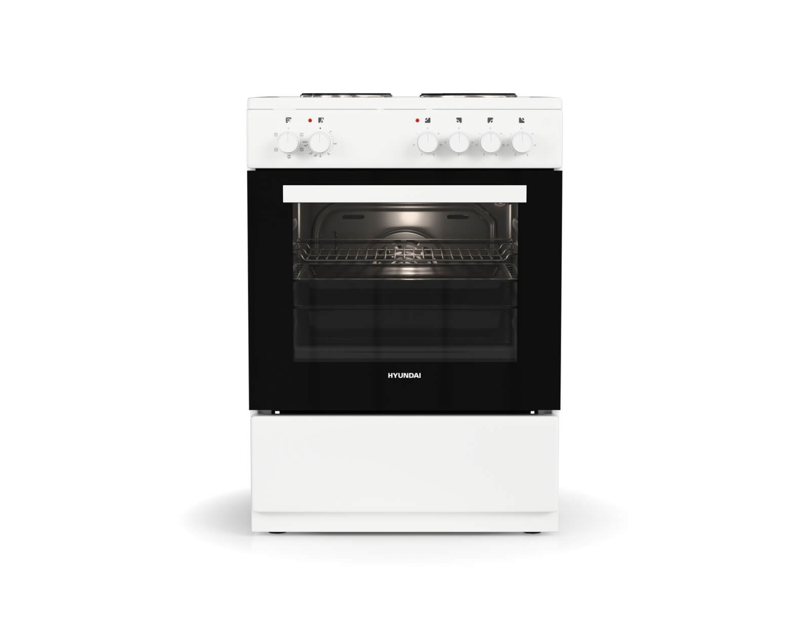 Κουζίνα Hyundai HCMU24V-7260ES/W με πολυλειτουργικό φούρνο, χωρητικότητα φούρνου 72 λίτρα, ενεργειακή κλάση Α, 4 εμαγιέ εστίες μαγειρέματος και 5 λειτουργίες ψησίματος.